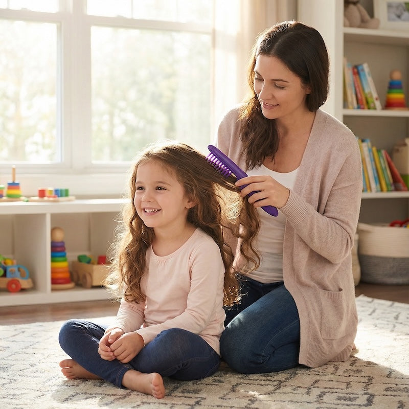 Tisoče staršev uporablja naš Hair Detangler™, ker razčeše lase brez bolečine, cukanja in joka — tudi pri občutljivem lasišču.