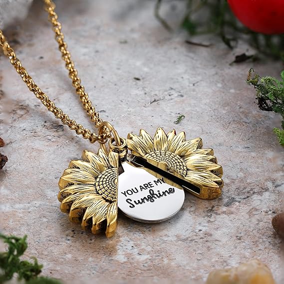 Oblikovana kot sončnica, ki se razpre in razkrije napis – popolna za vsakdan ali posebno priložnost.
